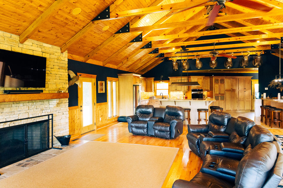 This beautiful lodge sits atop a bluff, overlooking the rolling hills. Relax on the porch, wet a line, shoot some clays, and treat yourself to some fantastic cooking!